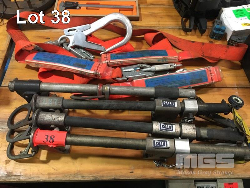 4 x FIXED BEAM ANCHORS, ADJUSTABLE, DBI SALA, IRON WING & 3 x FALL ARRESTORS & FITTINGS