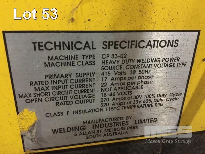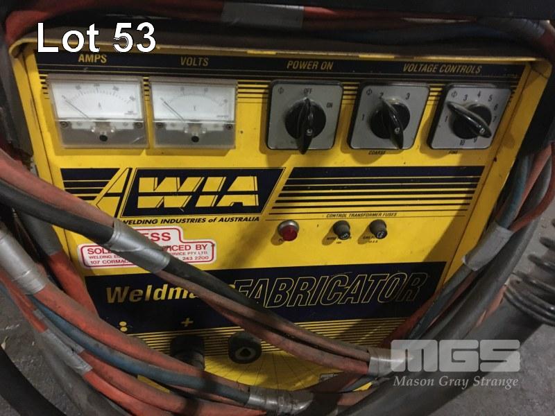 MIG WELDER, WIA WELDMATIC FABRICATOR TYPE: CP-53-02 WITH W17 WIRE FEEDER HAND PIECE & CABLES ON MOBILE BASE, 415V