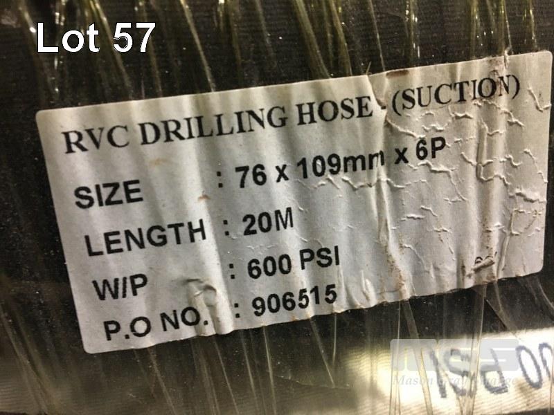 1 x PVC PRESSURE/SUCTION HOSE, SUIT DRILLING, 20m FLEXIBLE W/P: 600 PSI B/P: 1800PSI 109mm OUTSIDE DIAMETER 76mm INSIDE DIAMETER