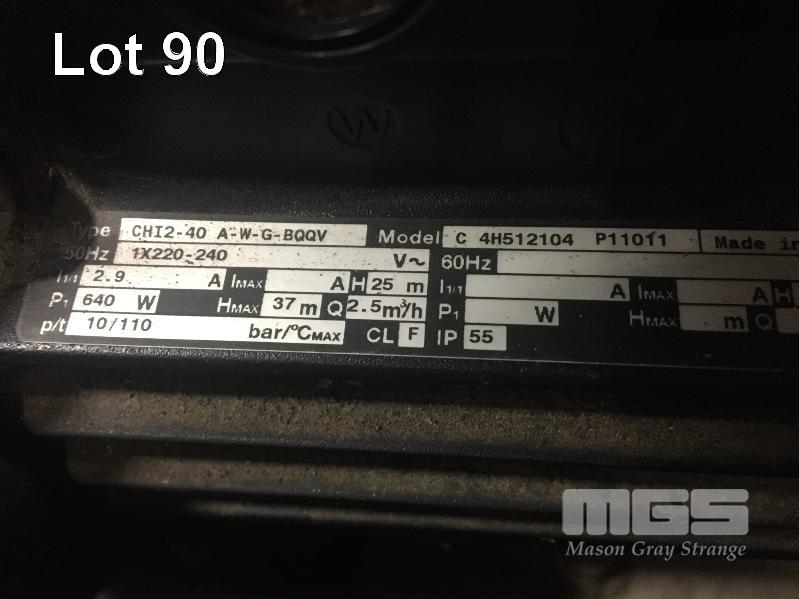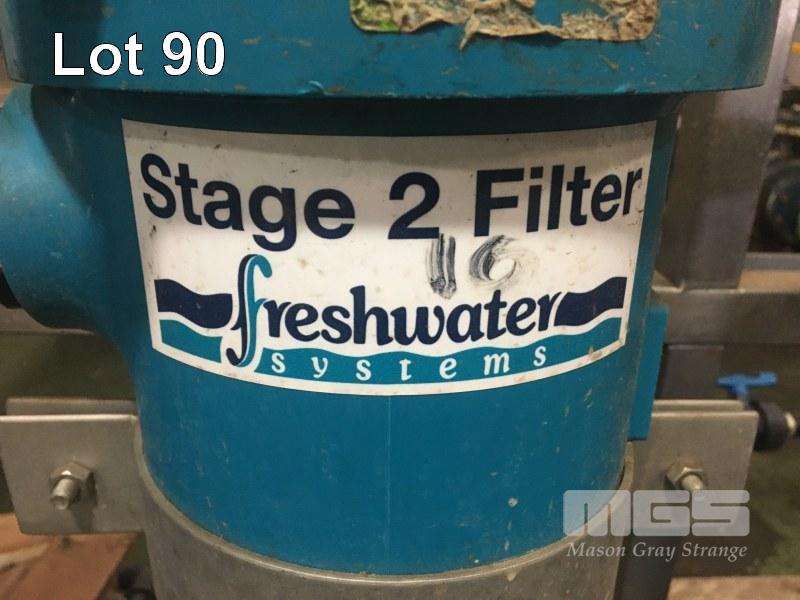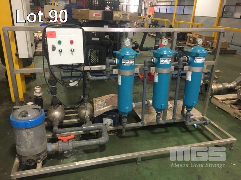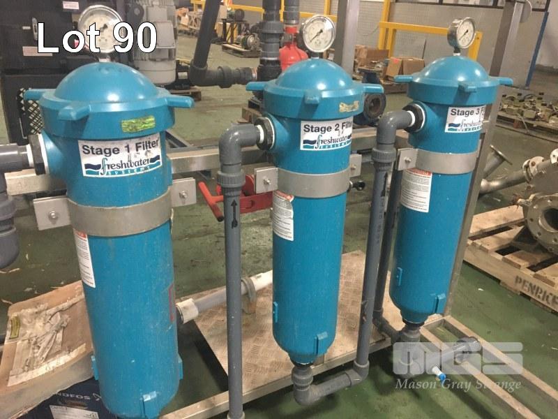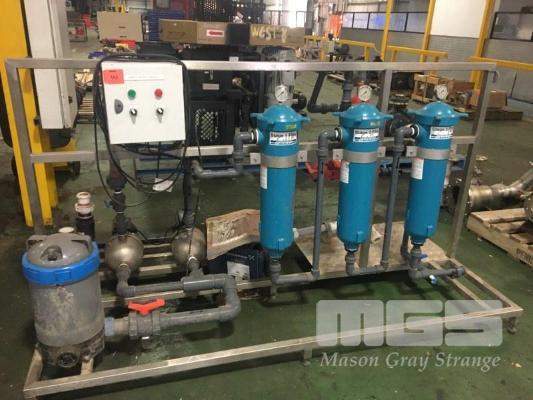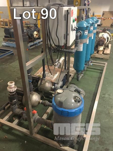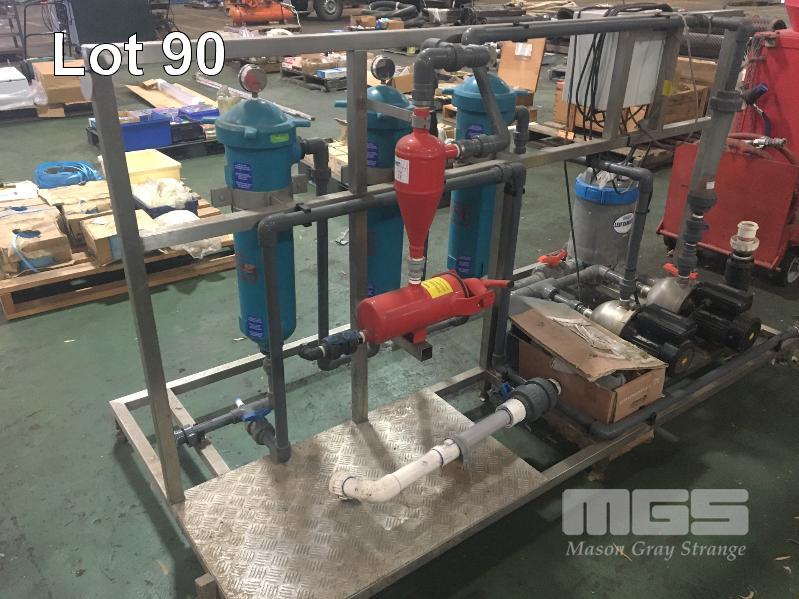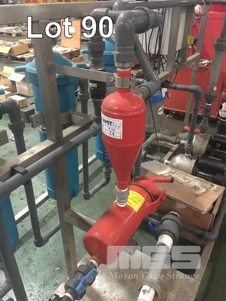 WATER PUMP & FILTRATION UNIT, MOUNTED IN STAINLESS STEEL FRAMEWORK INC 2 x GRUNDFOS STAINLESS STEEL WATER PUMPS MOD: C4H512104 P11011 1 x VAMITELI HYDROCYCLONE SEPARATOR MOD: F700 1 x MONARCH LEAF CANISTER FILTER 3 x FSI BAG FILTERS, 3 STAGE & CONTROL CABINET