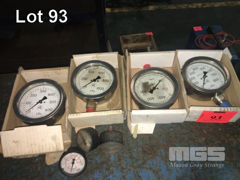 ASSORTED GAUGES INC WIKAI, FLOYD, ETC, PRESSURE, KPA, PSI & BAR, TEMPERATURE, ETC