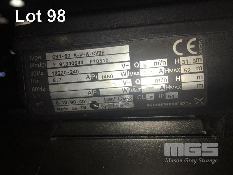 FLUID PUMP, GRUNDFOS TYPE: CH4.60AWA CUBE MOD: F91340644 STAINLESS STEEL, 5m3/HOUR, 52m HEAD 240V