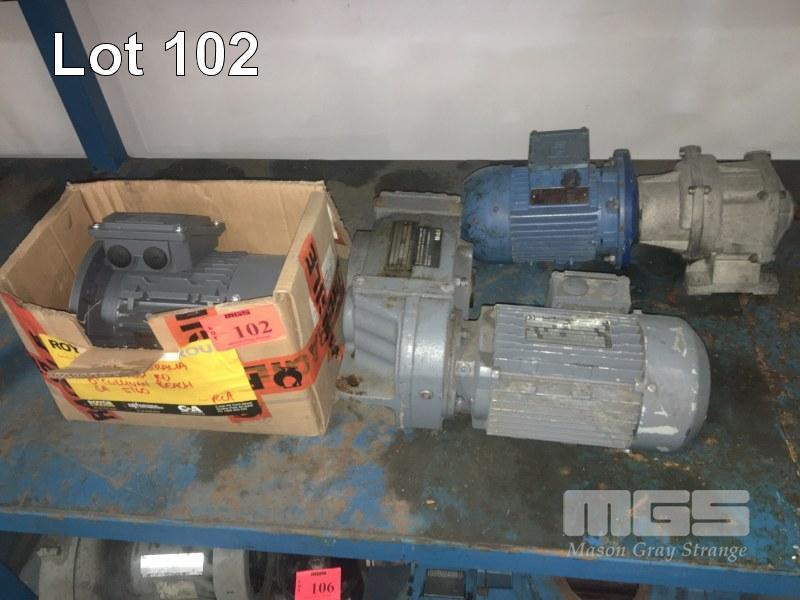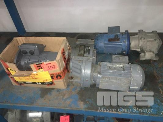 3 x ELEC MOTORS, SEW, WEG & TECHTOP 0.75kw WITH RIGHT ANGLE & STRAIGHT DRIVE BOXES, 415V