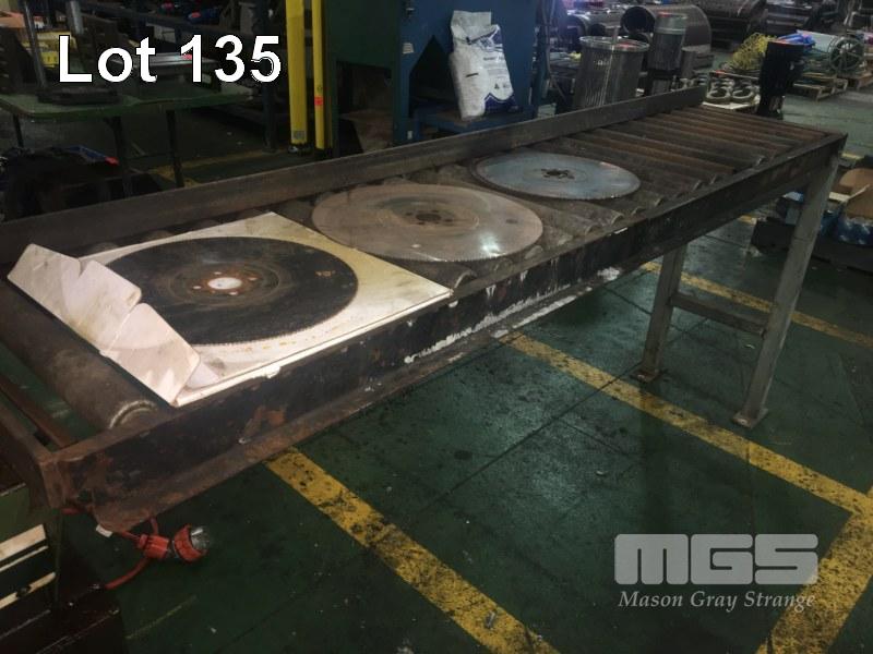 METAL CUT COLD SAW, MEP MOD: CONDOR350 COOLANT FEED, 415V WTH SPARE BLADES & INFEED & OUTFEED ROLLER CONVEYORS, 400 x 5700 x 900mm (H)