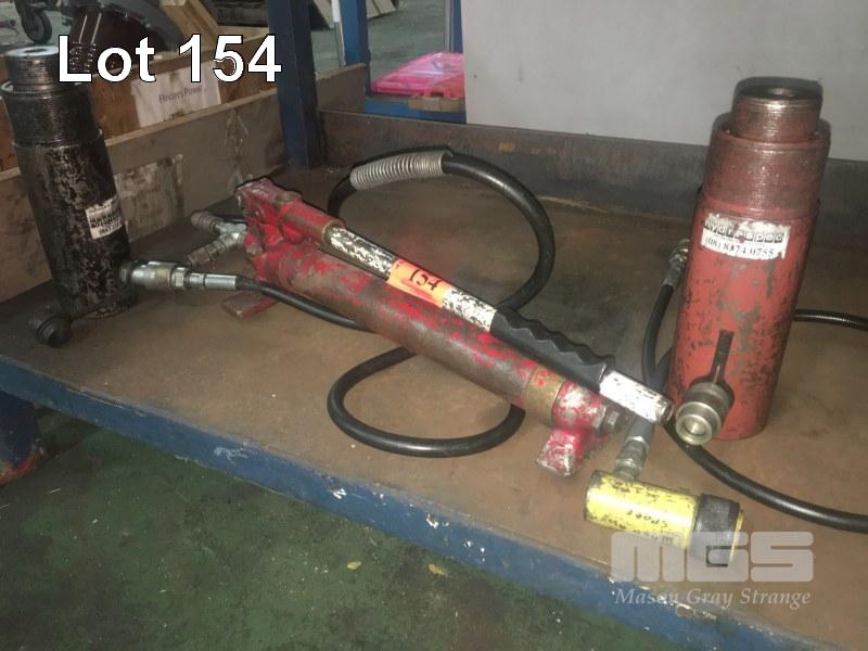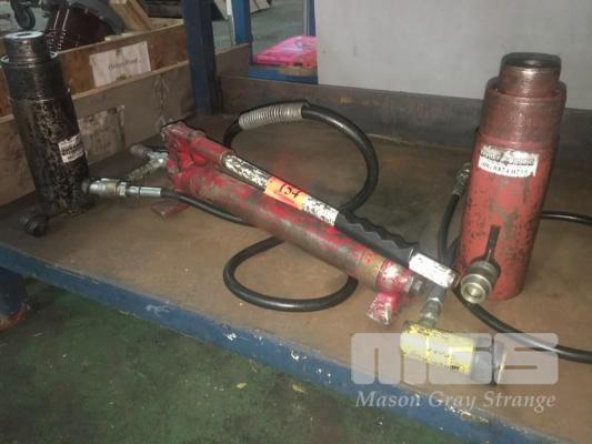 HYDRAULIC POWER HAND PUMP & 3 x RAMS & HOSES TO SUIT, ENERPAC & HYDRAPAC,