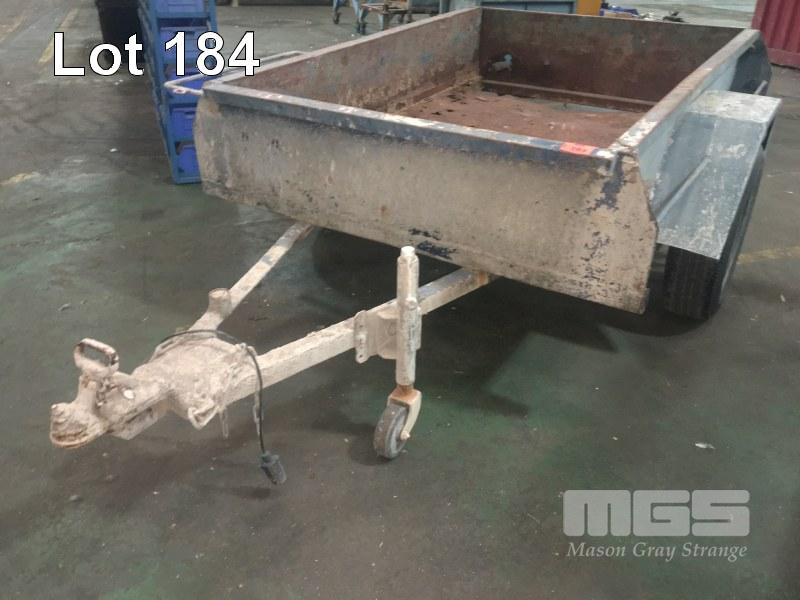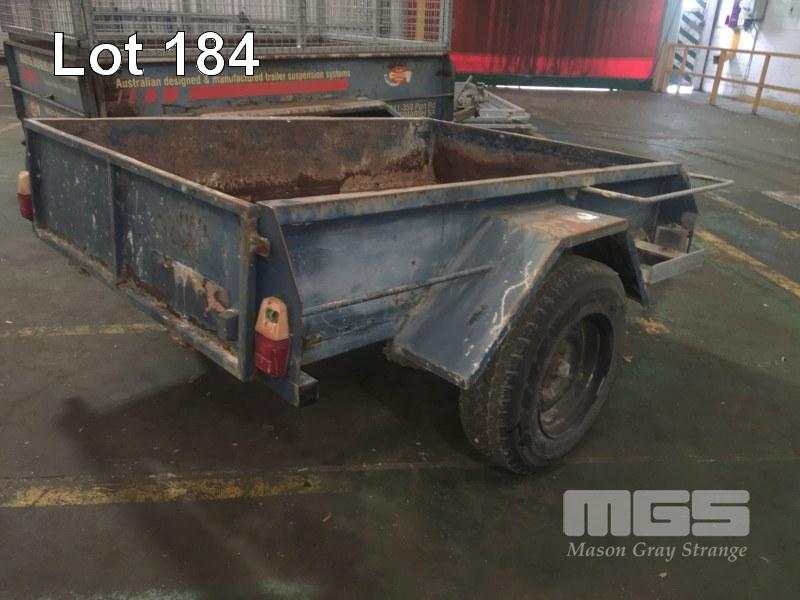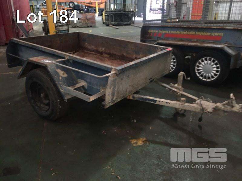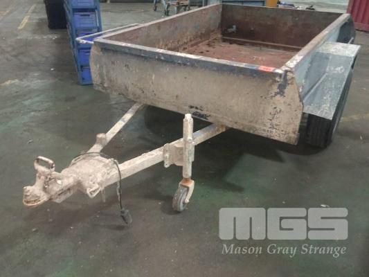 SINGLE AXLE TRAILER, 6x4' NO REG PLATES BALL HITCH, TYRES AVERAGE CONDITION NOTE: LOTS OF RUST!