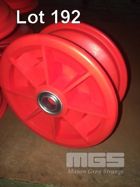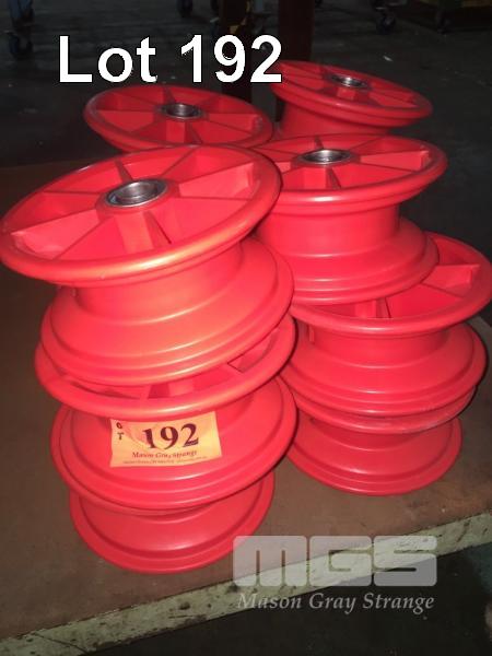 12 x RED POLY WHEEL HUBS & RIMS WITH BEARINGS, 170mm DIAMETER x 80mm