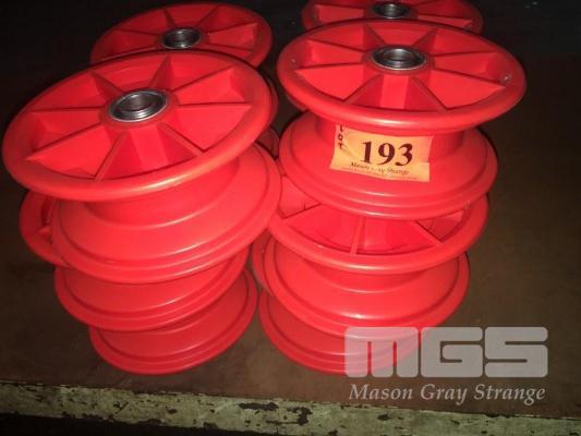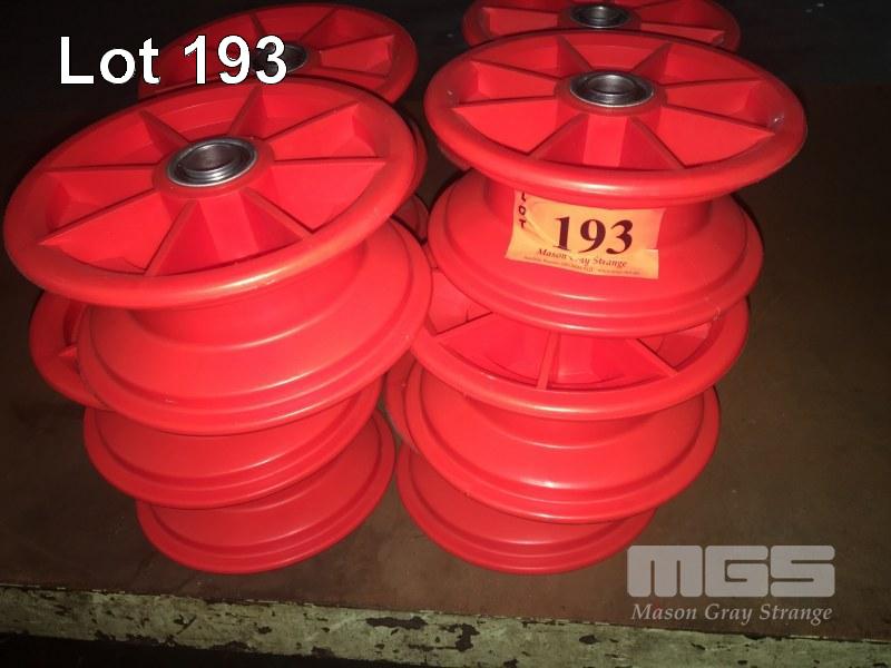 12 x RED POLY WHEEL HUBS & RIMS WITH BEARINGS, 170mm DIAMETER x 80mm
