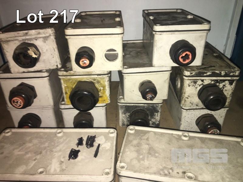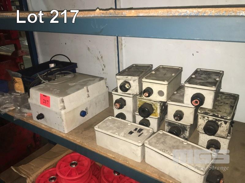 16 x HEAVY DUTY HIGH VOLTAGE JUNCTION BOXES/ENCLSOURES, INC CONTROL BOXES, PROXIMATY SENSORS, ETC 1 x SHELF
