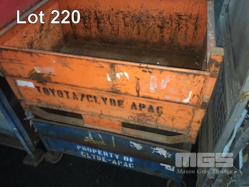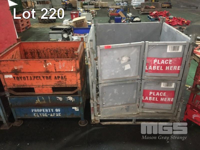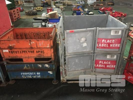 1 x FOLD DOWN STILLAGE, GALV STEEL, 1160 x 1100 x 1200mm (H) & 2 x HEAVY DUTY STEEL PARTS BINS, 940 x 640 x 500mm (H)