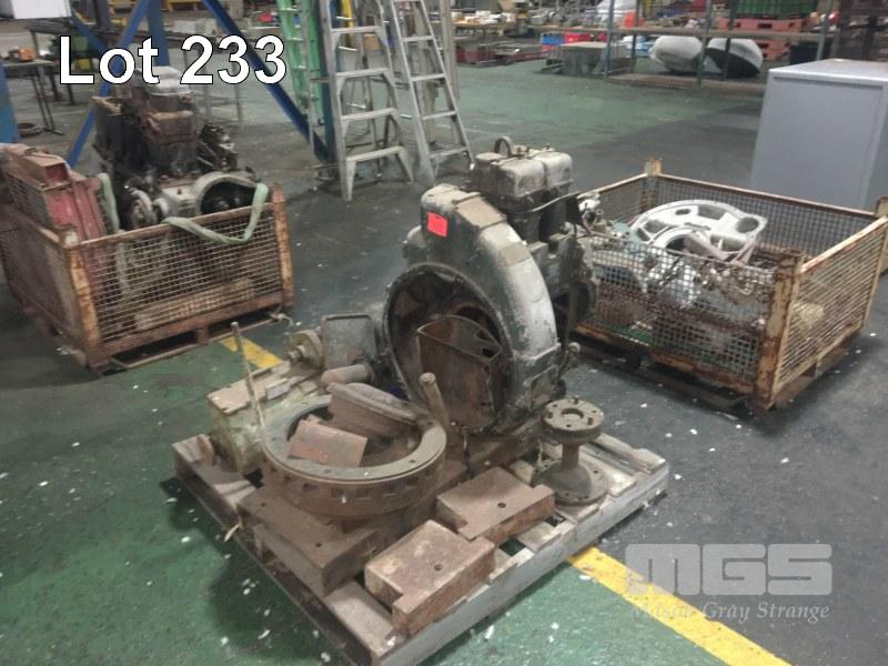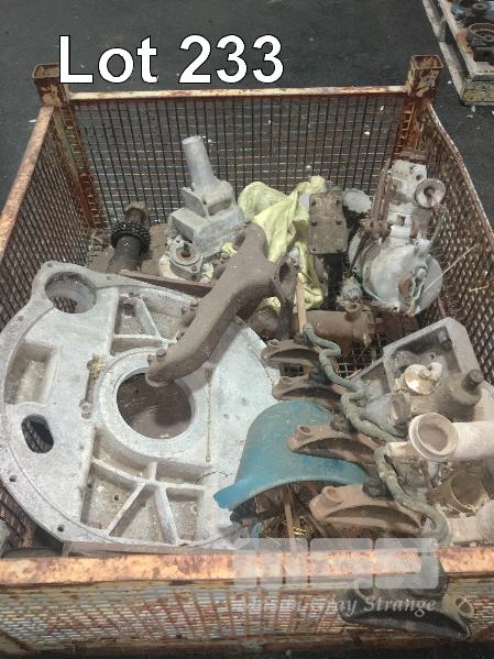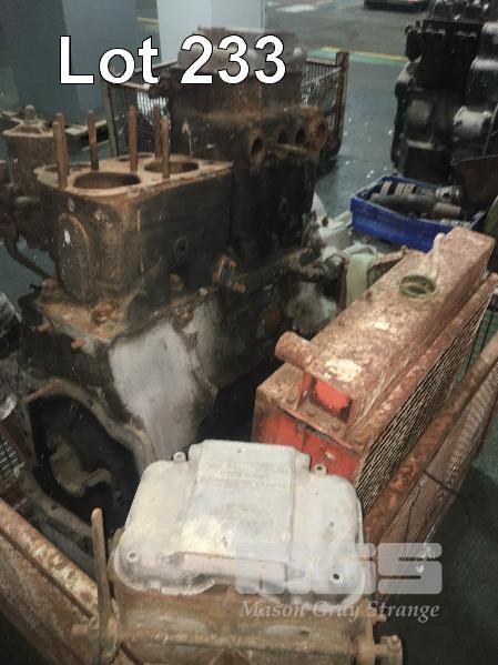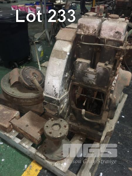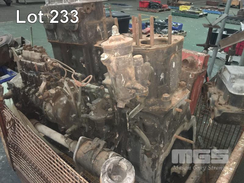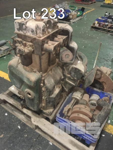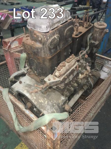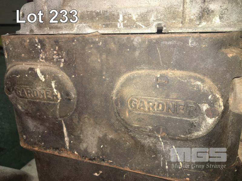 GARDNER ENGINE, 4 CYLINDER DIESEL PARTIALLY DISSASSEMBLED & LISTER TWIN CYLINDER DIESEL No: 1127HA28 20HP, 1800RPM DISMANTLED WITH PARTS, RADIATOR, GEARBOX, ETC 2 x STILLAGES & PALLET