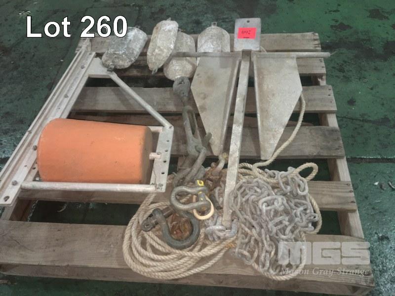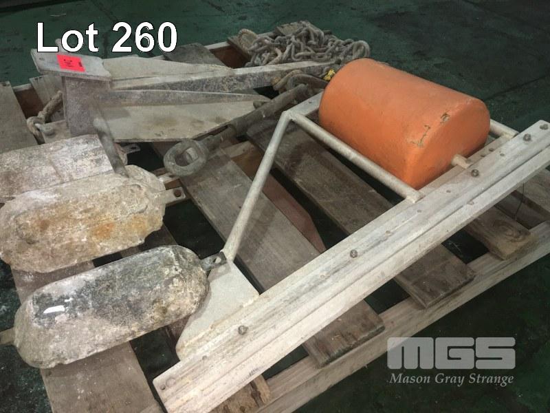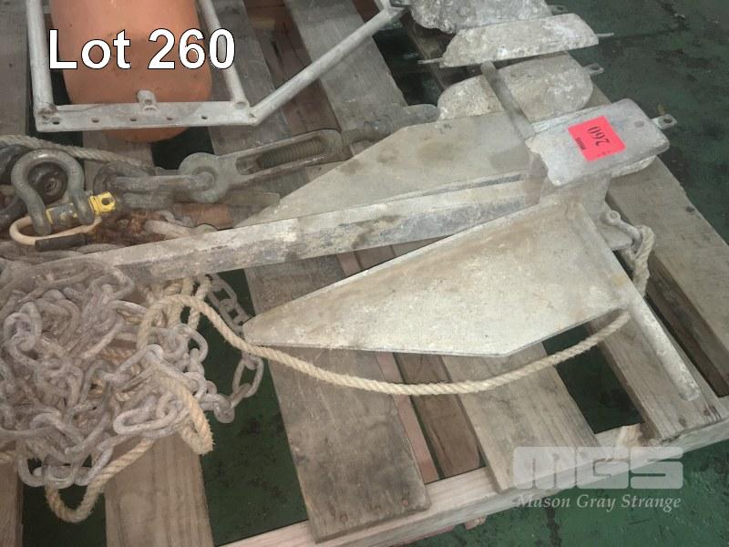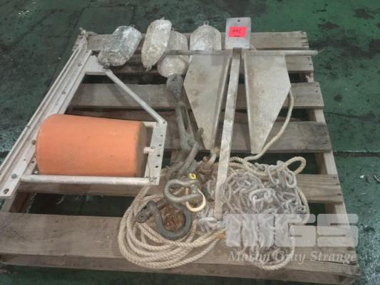 SAND ANCHOR, GALV STEEL, 850 x 670mm WITH CHAIN, D-SHACKLES, TURNBUCKLE, ROLLER FLOAT ON ALLOY MOUNT, ALLOY SACRAFICIAL ANODES, ETC, 1 x PALLET