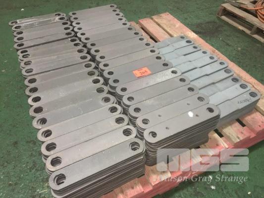 800 (APPROX) x STEEL BRACE PLATES/BRACKETS, ASSORTED TYPES, 315mm (L) x 60mm (W) x 8mm THICK