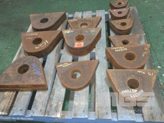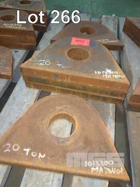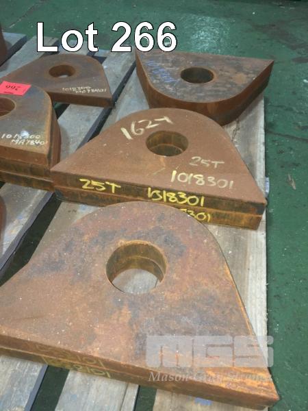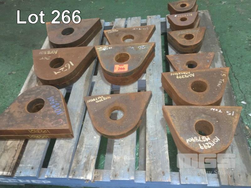 LIFTING LUGS, WELD ON, STEEL, ASSORTED SIZES INC 6 x 25T CAPACITY, 400 x 270 x 40mm 5 x 20T CAPACITY, 350 x 240 x 30mm 6 x 15T CAPACITY, 310 x 210 30mm 8 x 10T CAPACITY, 130 x 185 x 25mm, ETC 1 x PALLET