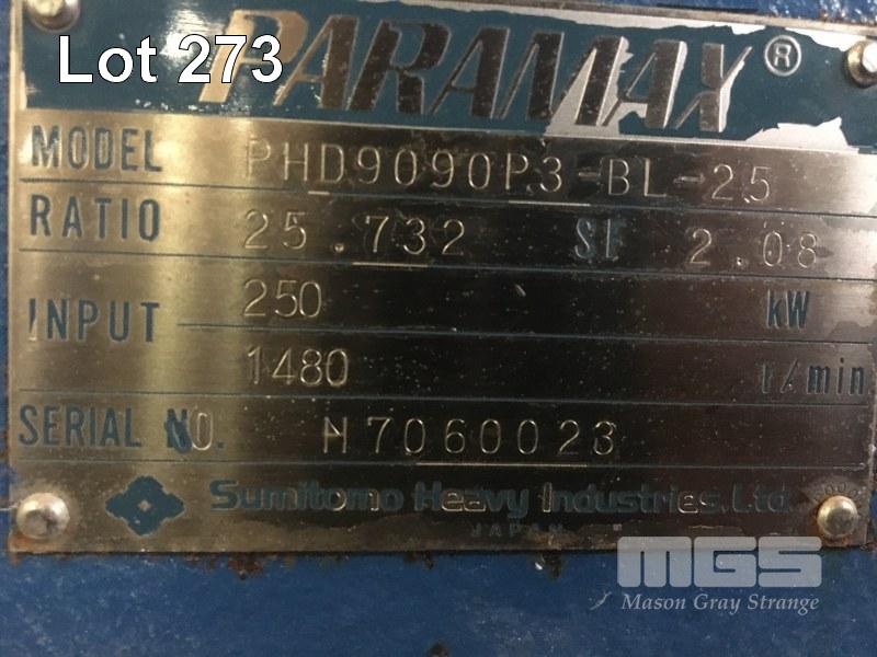 REDUCTION DRIVE GEARBOX, PARAMAX MOD: PHD9090P3-BL-25 RATIO: 25.732 SF: 2.08 INPUT: 250kw @ 1480RPM S/NO: N7060023 AS NEW