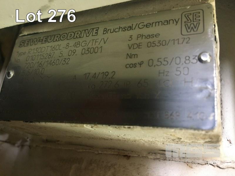 ELECTRIC MOTOR & INLINE DRIVE GEARBOX, SEW EURODRIVE TYPE: EURODRIVE TYPE: R130DT160L-8-4BG/TF/V KO-5.5/10 415V BRAKE, 240V, 200NM 90mm DIAMETER OUTPUT DRIVE SHAFT