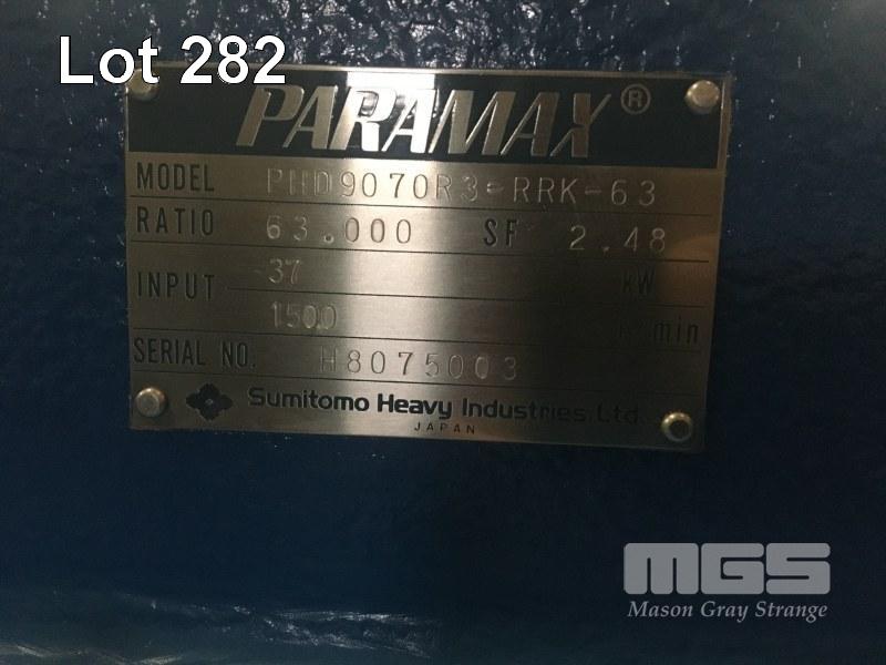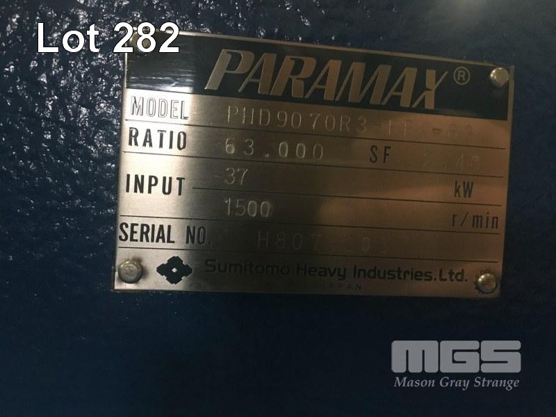 REDUCTION DRIVE GEARBOX, PARAMAX MOD: PHD9070R3-RRK-63 RATIO: 63.000 S.F-2.48 INPUT 37kw @ 1500RPM AS NEW