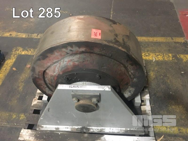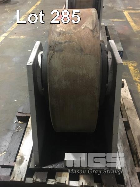 IDLER/ROLLER, HEAVY DUTY, SOLID STEEL 800mm DIAMETER x 240mm THICK BEARING SURFACE MOUNTED IN 30mm THICK STEEL SUPPORT STAND TOTAL SIZE: 920 x 610 x 880mm (H)
