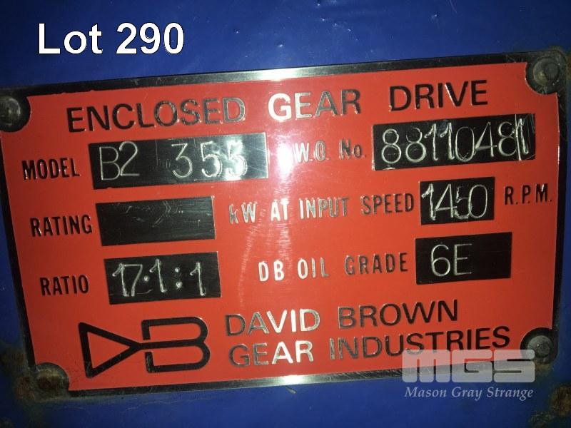 REDUCTION DRIVE GEARBOX, DAVID BROWN GEAR INDUSTRIES MOD: B2355 W.O No-8811048 1450RPM RATIO: 17.1:1