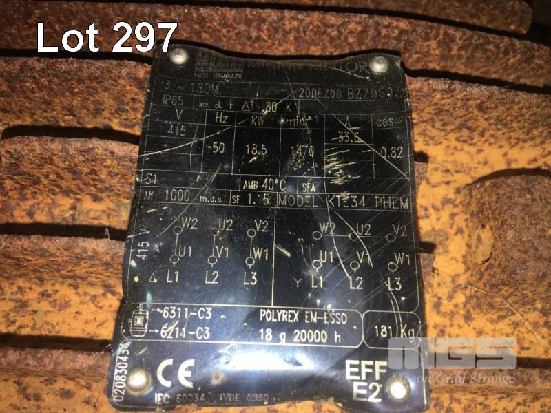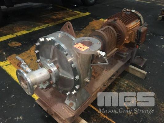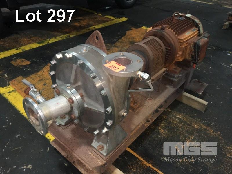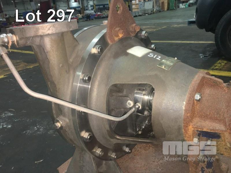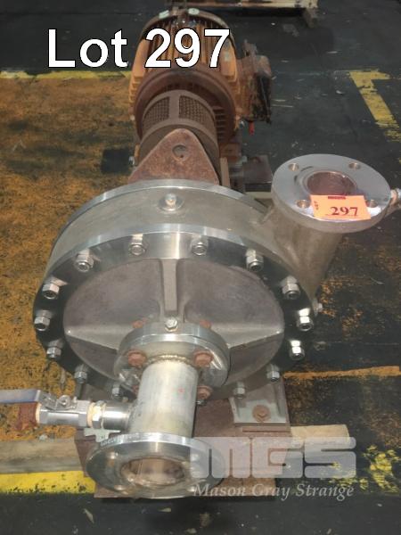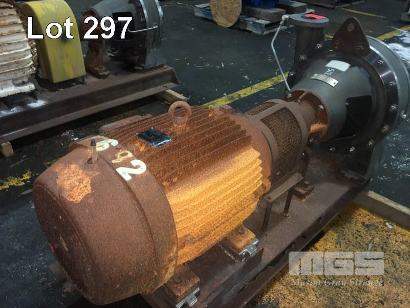CENTRIFUGAL FLUID TRANSFER PUMP STAINLESS STEEL 80mm INLET 65mm OUTLET 340mm IMPELLER DIAMETER POWERED BY WEG 18.5kw, 1470RPM, 415V MOTOR SKID MOUNTED