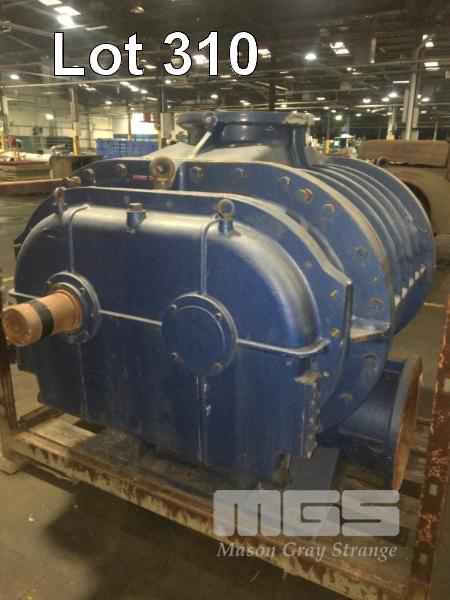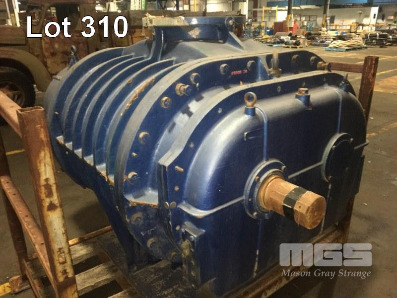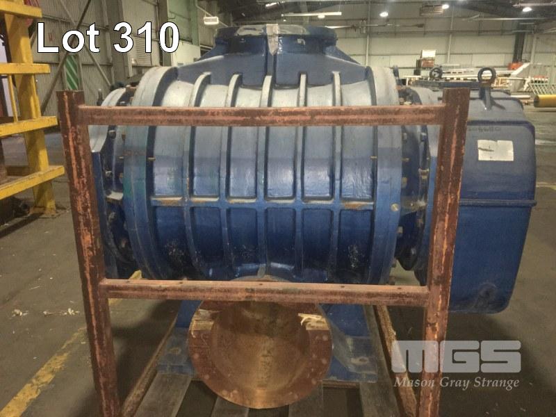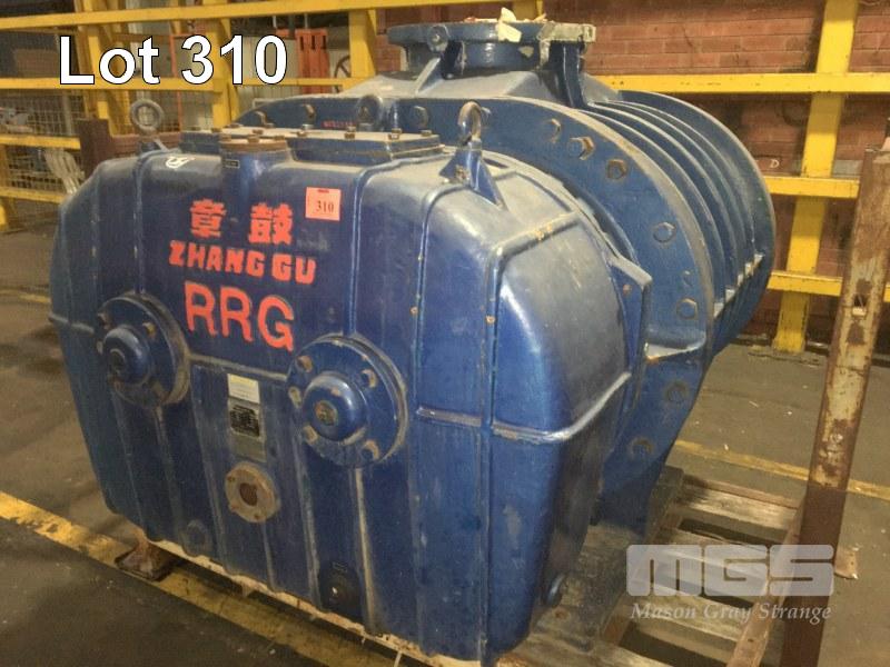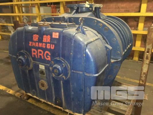 ROOTS BLOWER, TWIN LOBE HIGH CAPACITY AIR FLOW ZHANGQIU BLOWER WORKS TYPE: RRG-4000 CAP: 285m3/MIN RAV: 730RPM POWER: 117kw DIS.P- 20KPA, INLET & OUTLET DIAMETER: 390mm DOM: 2004 WEIGHT: 6200kg 1900 x 1500 x 1500mm (H)