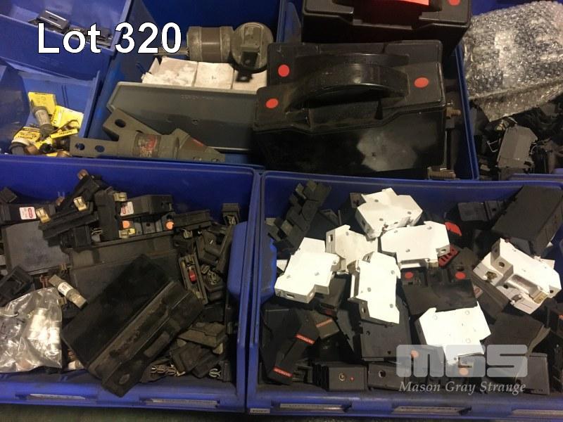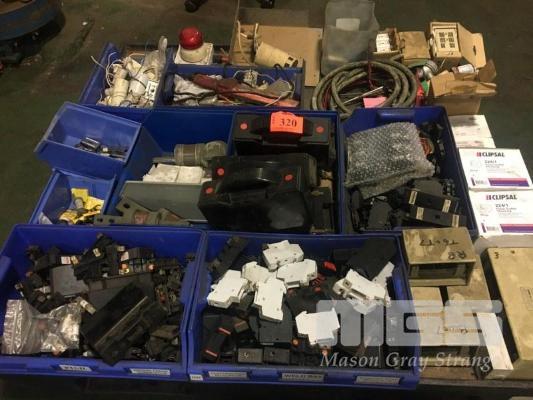 ELECTRICAL COMPONENTS INC FUSES & CIRCUIT BREAKERS, FLOOR OUTLETS, SWITCHES, TIMERS, TEMP & PRESSURE SENSORS IN PARTS DRAWERS 1 x PALLET