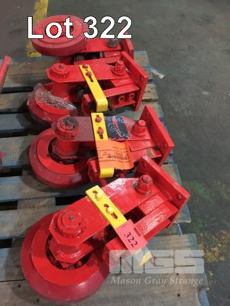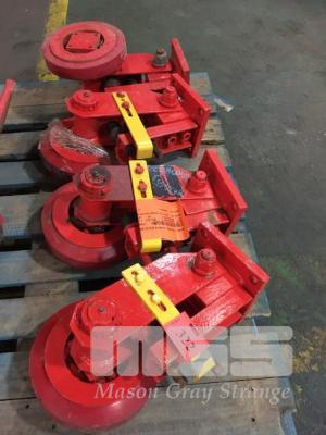 4 x ROLLER ASSEMBLIES, NOLATHAN WHEELS, STEEL HUB, 150 x 50mm HEAVY DUTY CONSTRUCTION IN ADJUSTABLE SWING ARM