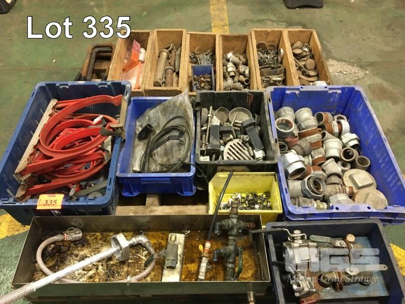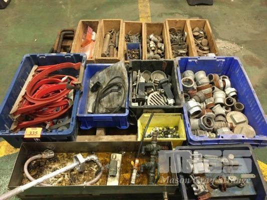 BRASS WELSH PLUGS, GALV PIP FITTINGS, RETAINING PINS, VALVES, FIRE EXTINGUISHER, MOUNTING BRACKETS, ETC, 1 x PALLET