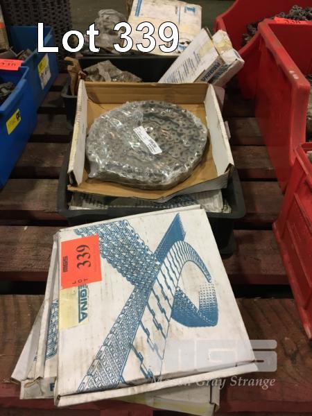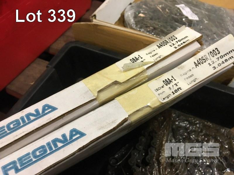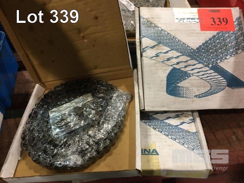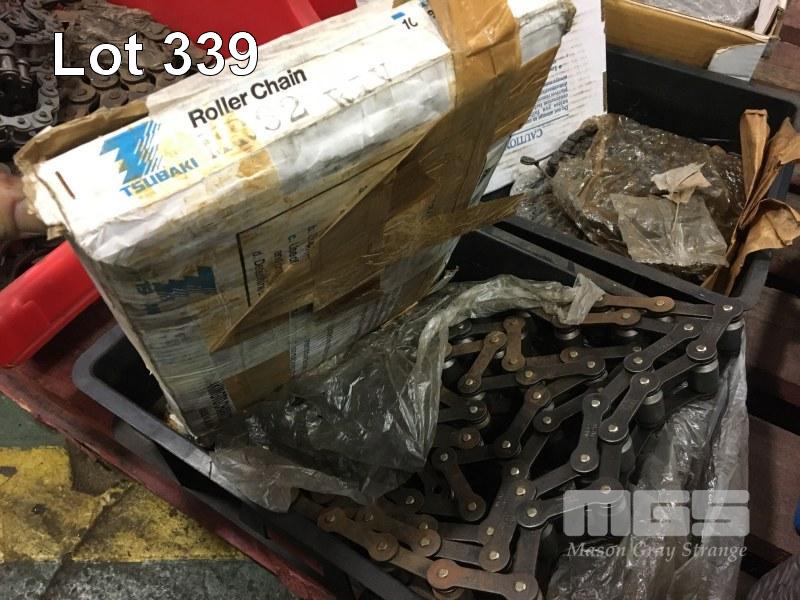 ASSORTED ROLLER CHAINS, REGINA, NEW IN BOXES, SIZES INC 873NC/000, A40SR/003, TSUBAKI-MR62 RIV, ETC, 3 x BLACK TUBS