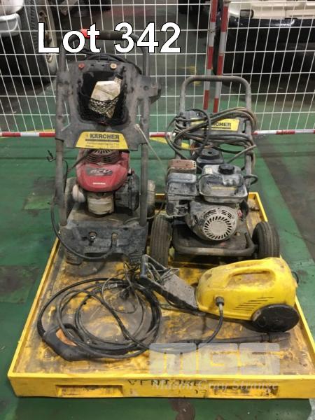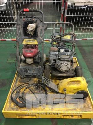 3 x PRESSURE WASHERS, KARCHER MOD: PERFORMANCE PLUS POWERED BY HONDA GCV 160, G3200 OC POWERED BY PETROL ENGINE & 240V UNIT, ALL FAULTS, 1 x PALLET