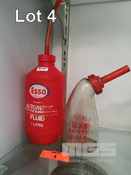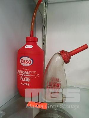 GLASS LUCAS BATTERY FILLER & ESSO FLUID BOTTLE