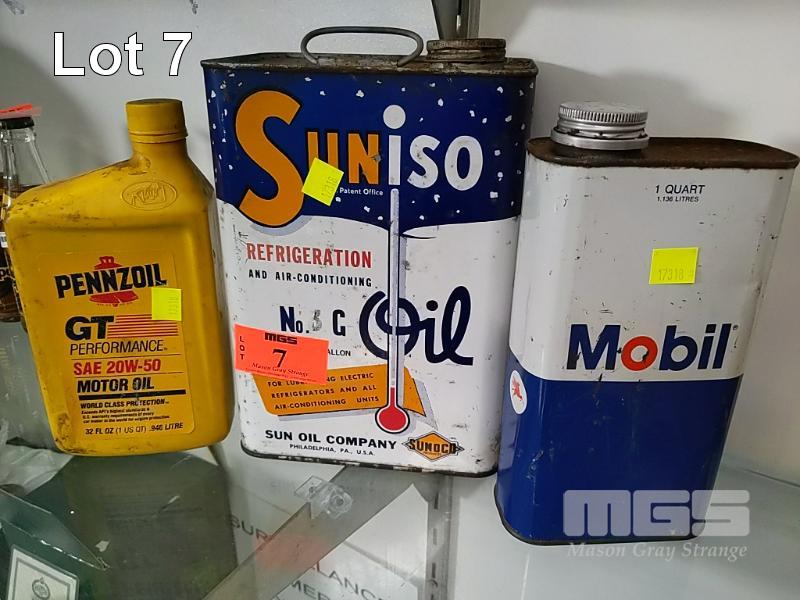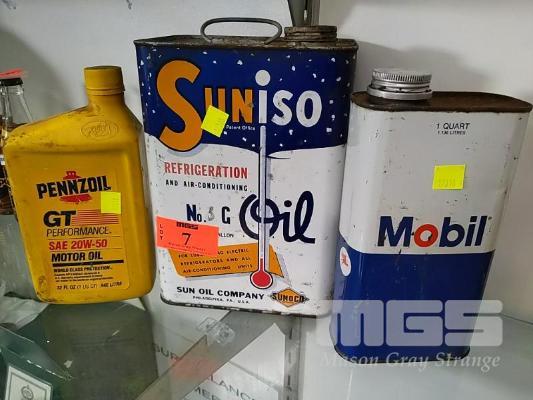 SUNISO 1 GALLON TIN, BOBIL 1 QUART TIN, ETC