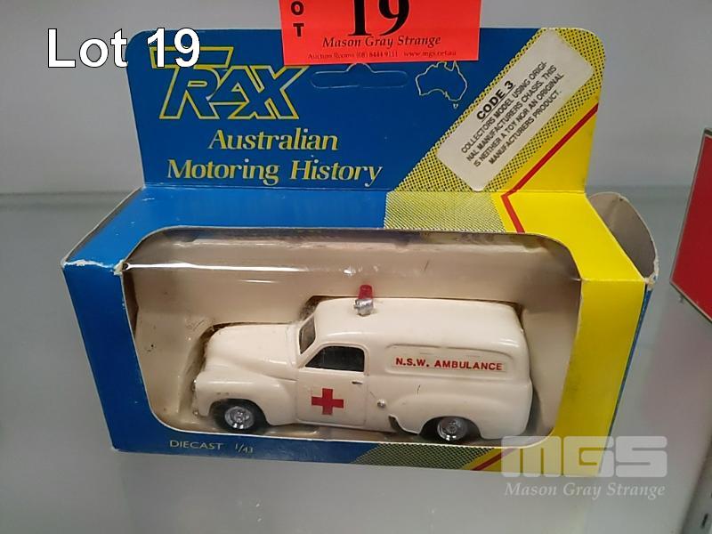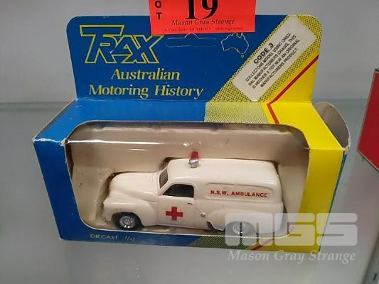 PROTOTYPE CODE 3 TRAX NSW AMBULANCE, 1954 FJ HOLDEN STATION WAGON 1:43 SCALE, DIECAST, IN SPECIAL ORIGINAL BOX, RARE!