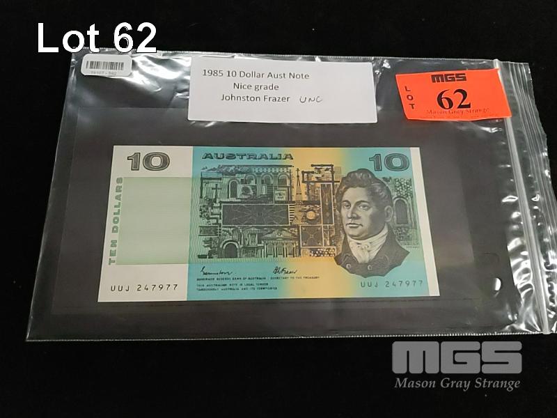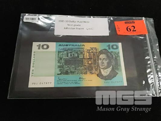 1985 $10.00 NOTE FRAZER JOHNSTON APPEARS UNC
