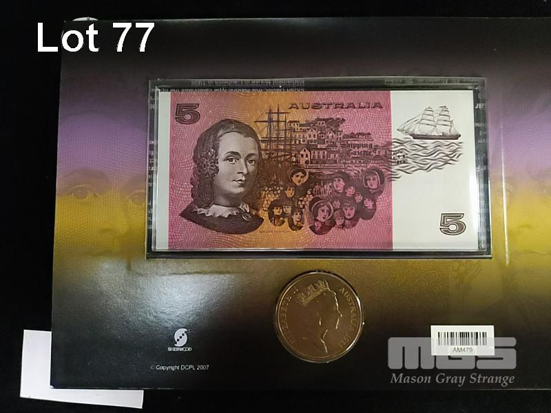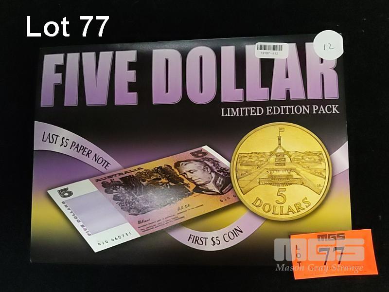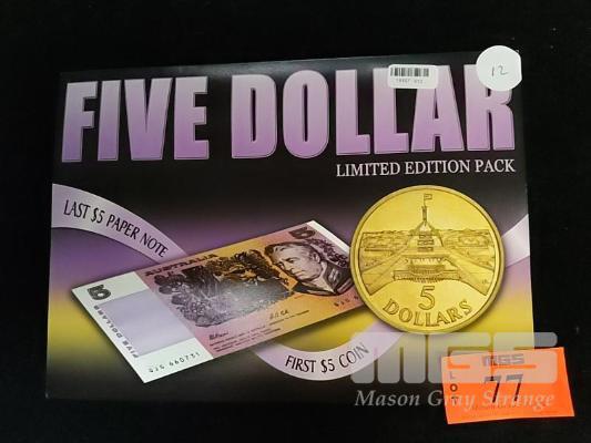 1992 LAST 5 DOLLAR NOTE 1ST 5 DOLLAR COIN IN DISPLAY FOLDER