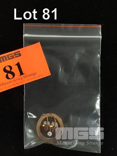 ROSE GOLD BROOCH, CIRCULAR WITH CENTRAL FLORAL DESIGN, CLEAR, PINK STONE & PEARL SETTING, 9CT, 2.2 GRAMS