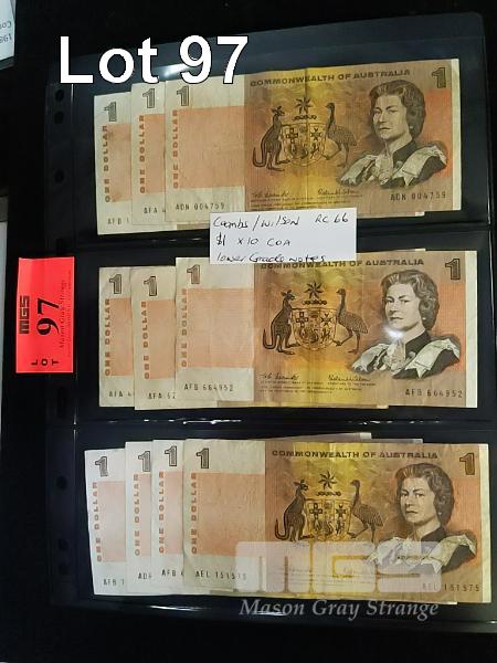 10 X AUSTRALIAN 1 DOLLAR NOTES COOMBS/WILSON, A PREFIX