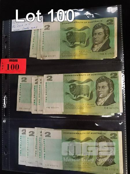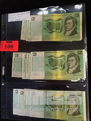 15 X AUSTRALIAN TWO DOLLAR PAPER BANKNOTES, PHILLIPS/RANDALL, F PREFIXES
