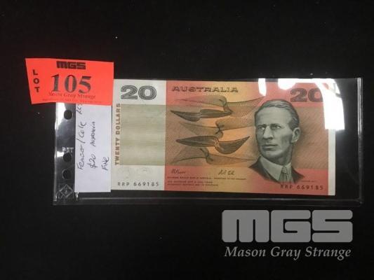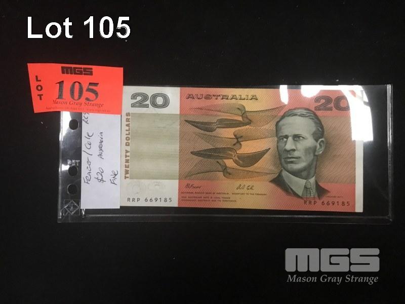 AUSTRALIAN 20 DOLLAR PAPER BANKNOTE FRAZER/COLE RRP PREFIX