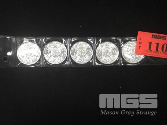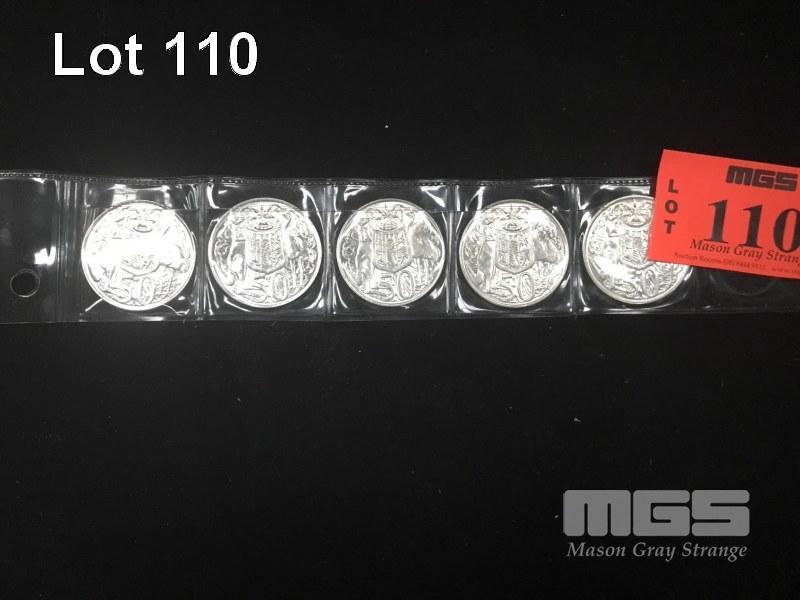 5 X 1966 ROUND 50 CENT COINS