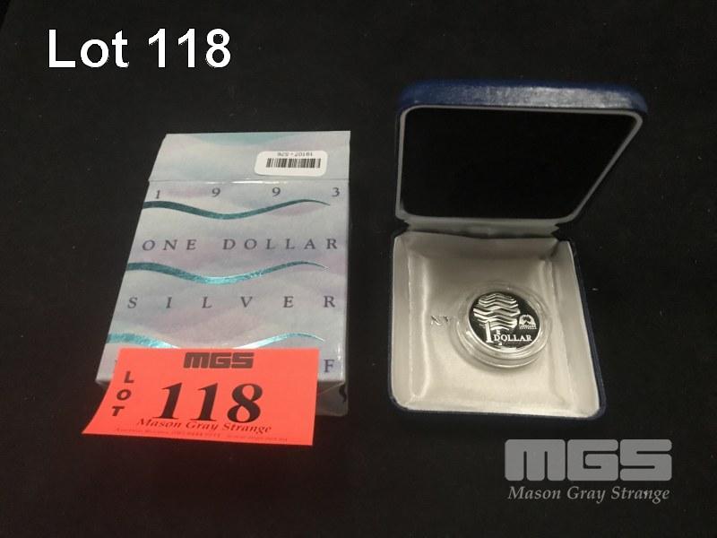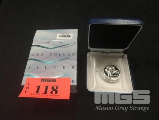 1993 PROOF FINE SILVER " 1ST $1 DOLLAR COIN" IN DISPLAY BOX