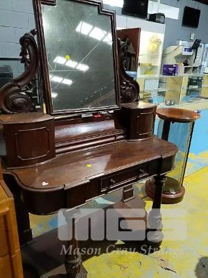 VINTAGE MAHOGANY DRESSER, 2 x DRAWERS/DOORS, TILT MIRROR