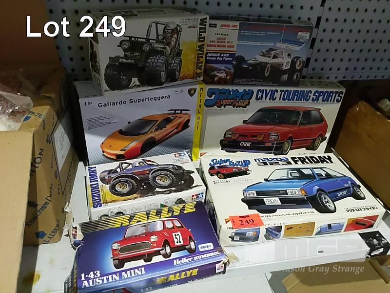 MODEL CAR KITS, TAMIYA, NICHIMO, PONY, ETC, MAZDA, (MOST UNHINGED BUT NOT ASSEMBLED)
