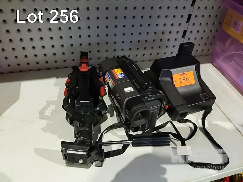 POLAROID CAMERA, VIDEO CAMERA & TRIPOD