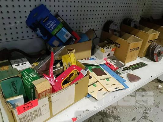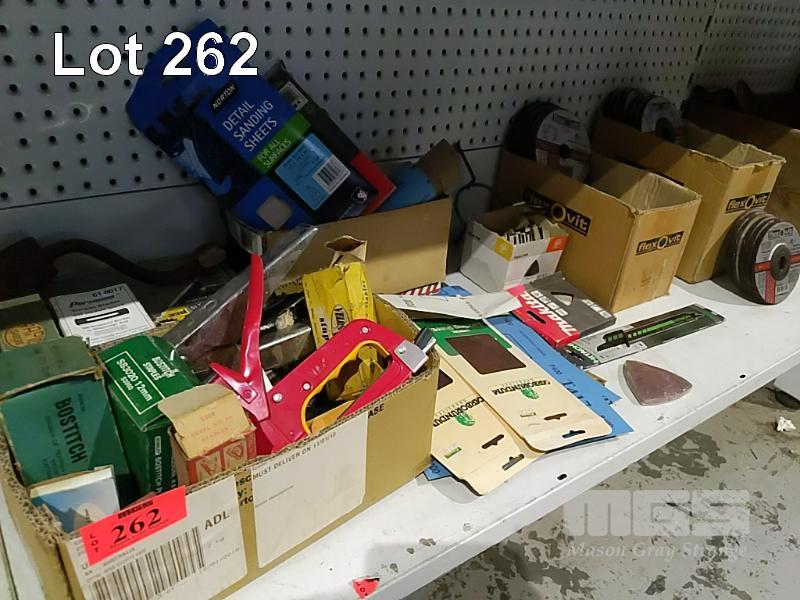 NEW OLD STOCK WORKSHOP CONSUMABLES, GRINDING DISCS, SANDPAPER, STAPLES & NAILS