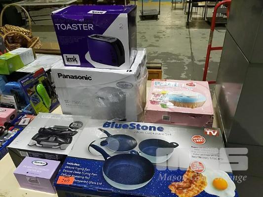 ASSORTED KITCHEN APPLIANCES & COOKWARE, FRY PAN SET, BREADMAKER, TOASTER, ETC