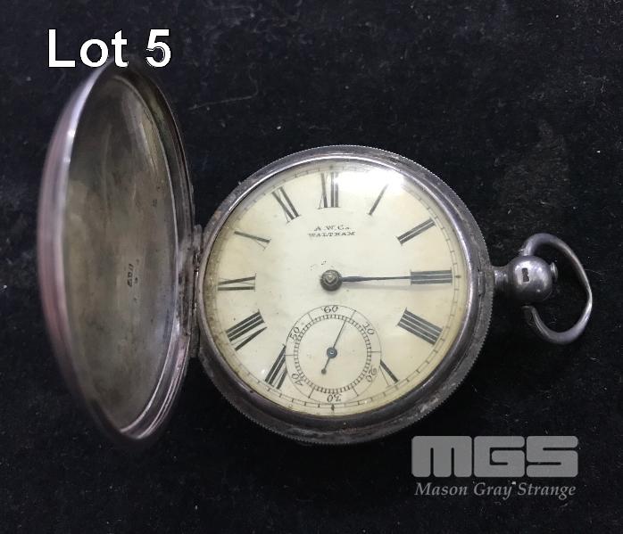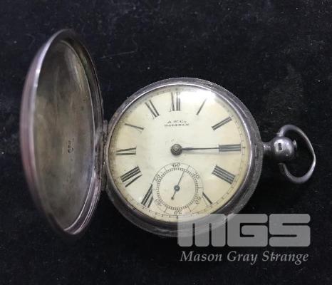 SILVER FOB WATCH, HALL MARKED CASE, A.W Co WALTMAN