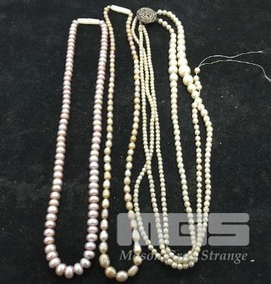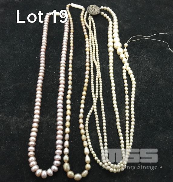 3 X PEARL NECKLACES, 2 X SINGLE STRAND 1 X TRIPLE STRAND (1 X STRAND, ALL FAULTS)