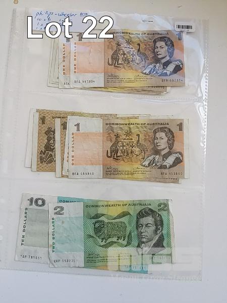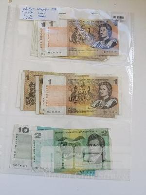 12 X AUSTRALIAN PAPER BANKNOTES, 10 X 1 DOLLAR NOTES, 1 X 2 DOLLAR, 1 X 10 DOLLAR PHILLIPS/WHEELER, ASSORTED PREFIXES