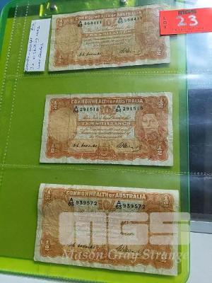 3 X TEN SHILLING NOTES, COOMBS/WATTS 2 X A63 1 X A64 PREFIXES